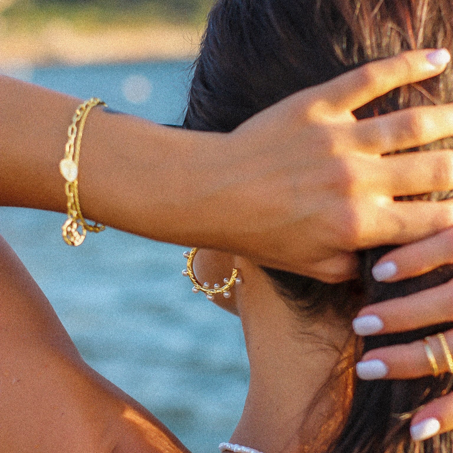 Yes, our gold-plated stainless steel jewelry is 100% waterproof and exceptionally durable – thanks to the high-quality PVD (Physical Vapor Deposition) coating. This process creates a particularly durable gold plating that is significantly more resistant to abrasion, water, sweat, and everyday wear and tear than conventional gold plating.