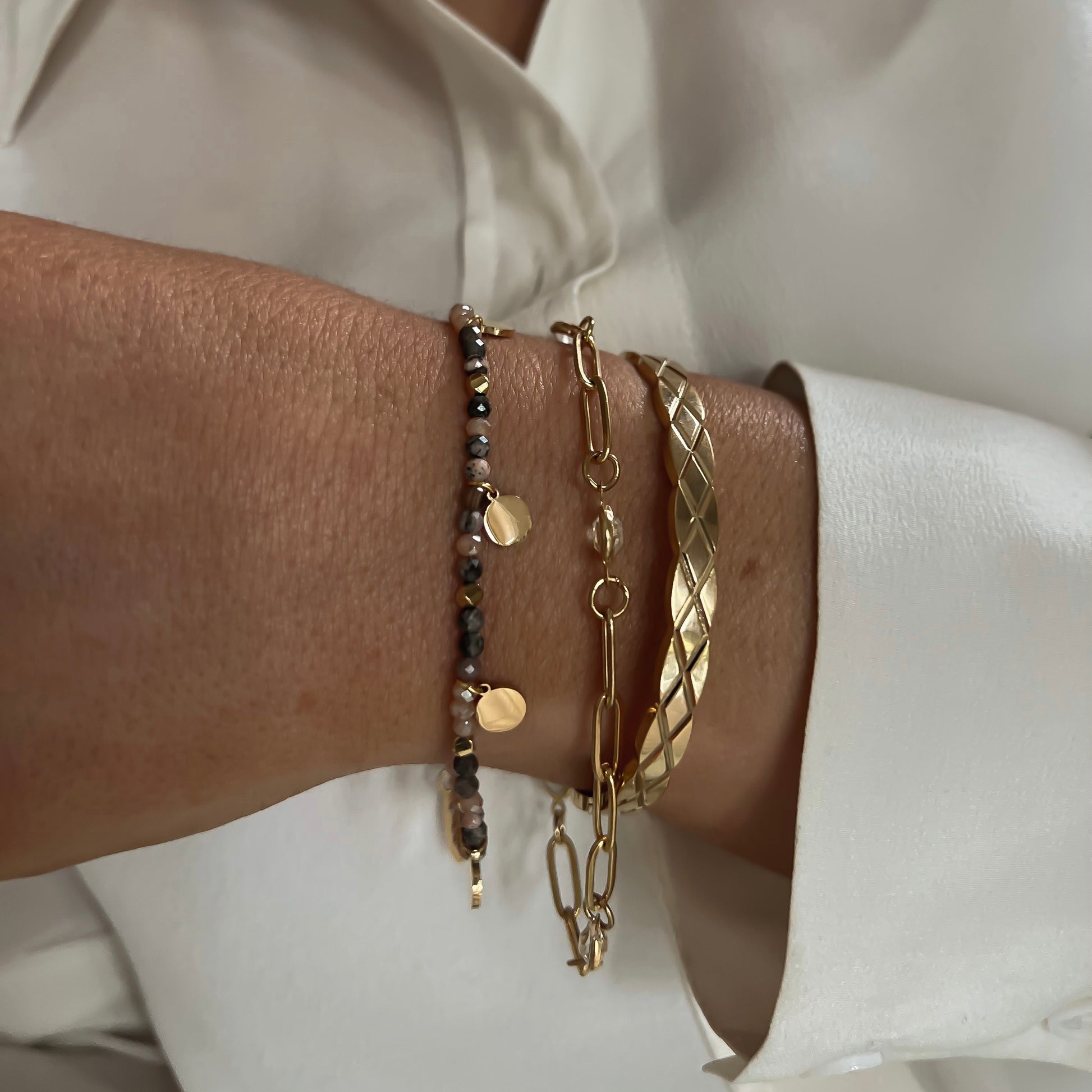 Yes, our gold-plated stainless steel jewelry is 100% waterproof and exceptionally durable – thanks to the high-quality PVD (Physical Vapor Deposition) coating. This process creates a particularly durable gold plating that is significantly more resistant to abrasion, water, sweat, and everyday wear and tear than conventional gold plating.