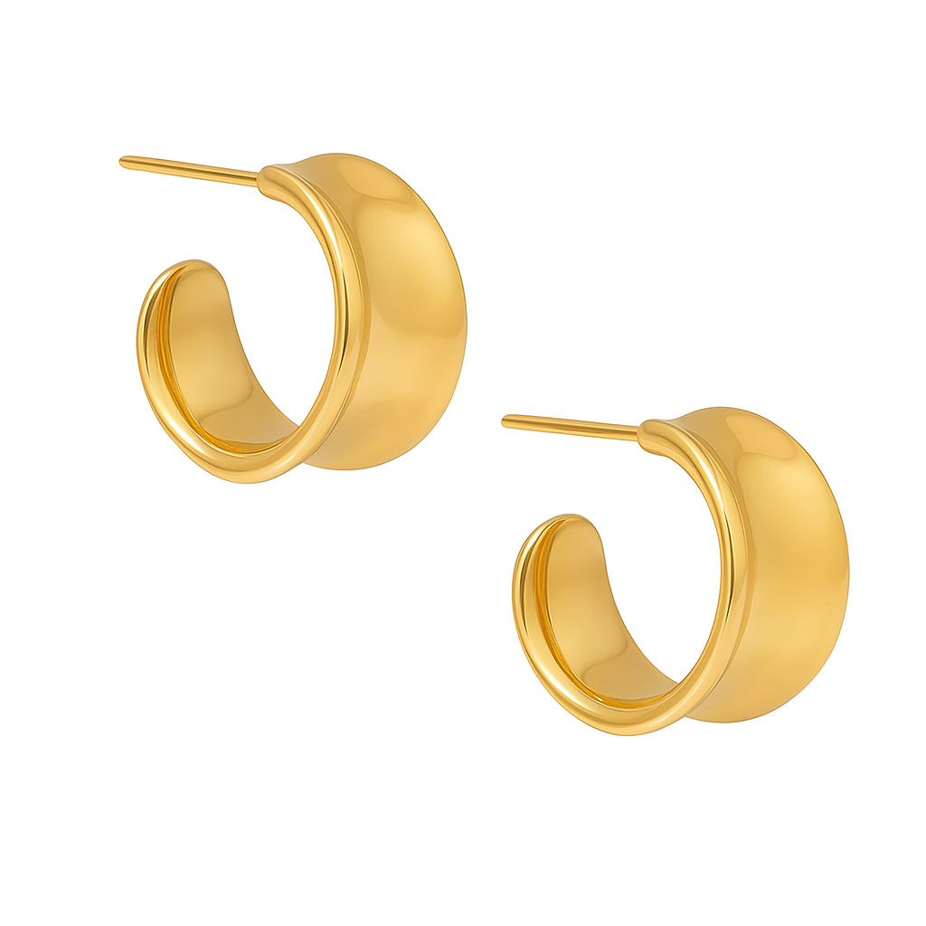 Die Shine Curve Hoops tragen die sanfte Rundung einer Welle und den warmen Glanz eines Sommertags. Sie sind modern, selbstbewusst und bewusst minimalistisch – ein Design, das nicht laut werden muss, um zu wirken. Ein natürlicher Glow, der sich anfühlt wie Licht auf der Haut.