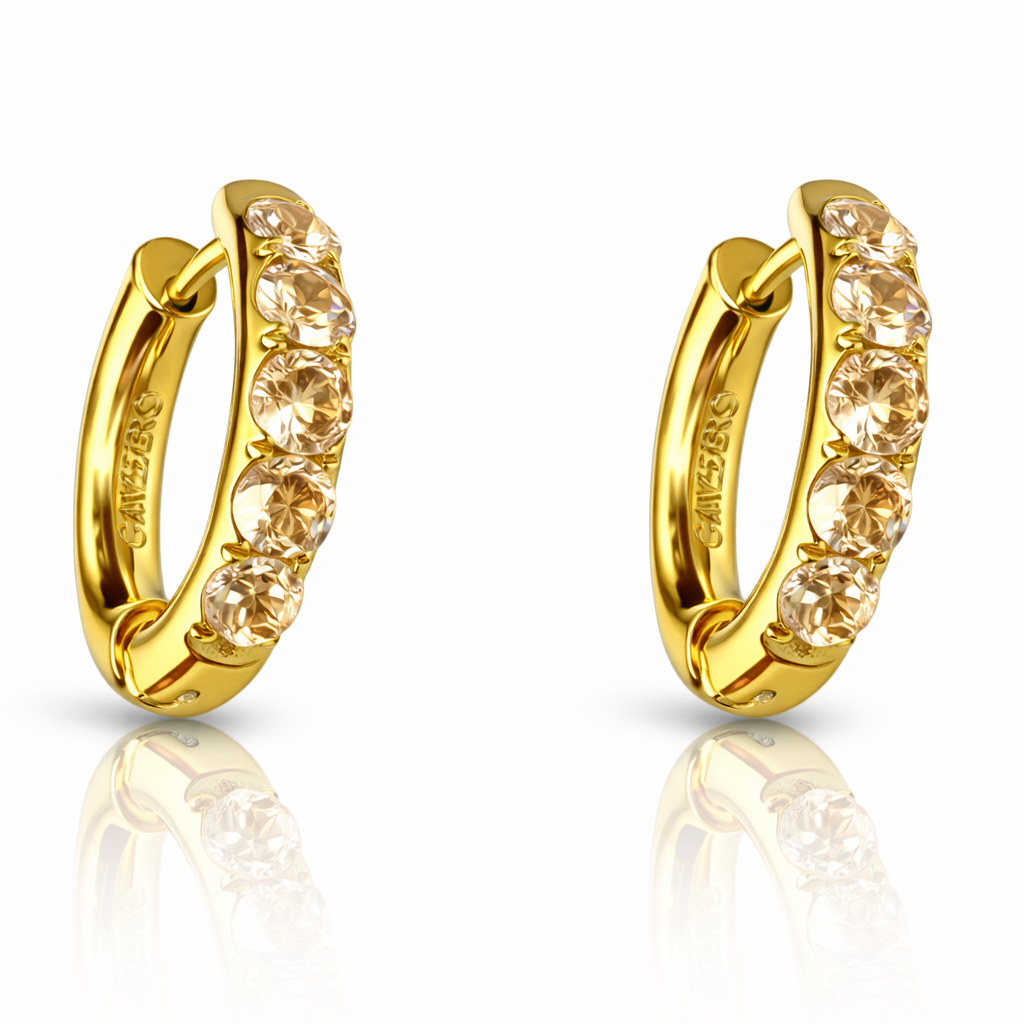 Die feine Reihe funkelnder Zirkonia fängt das Licht bei jeder Bewegung ein und verleiht dem klassischen Creolen-Design eine moderne Tiefe.