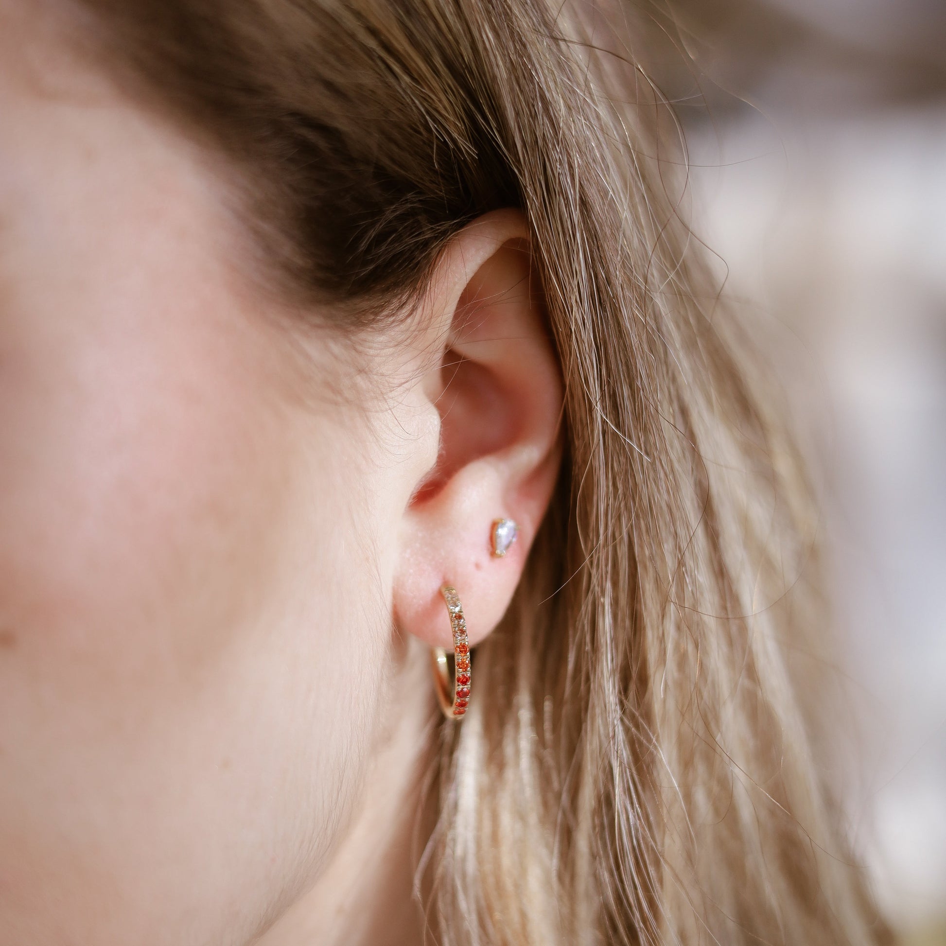 Die Tramonto Creolen sind inspiriert vom Sonnenuntergang Floridas – von dem Moment, in dem der Himmel langsam von hellem Gold in warmes Orange übergeht.