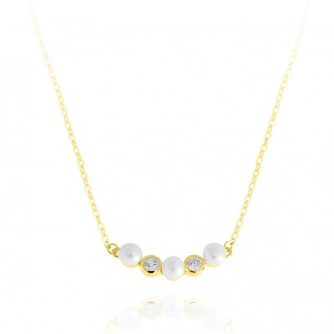 - Design:Zarte Halskette mit abwechselnd angeordneten Perlen und Zirkonia-Steinen