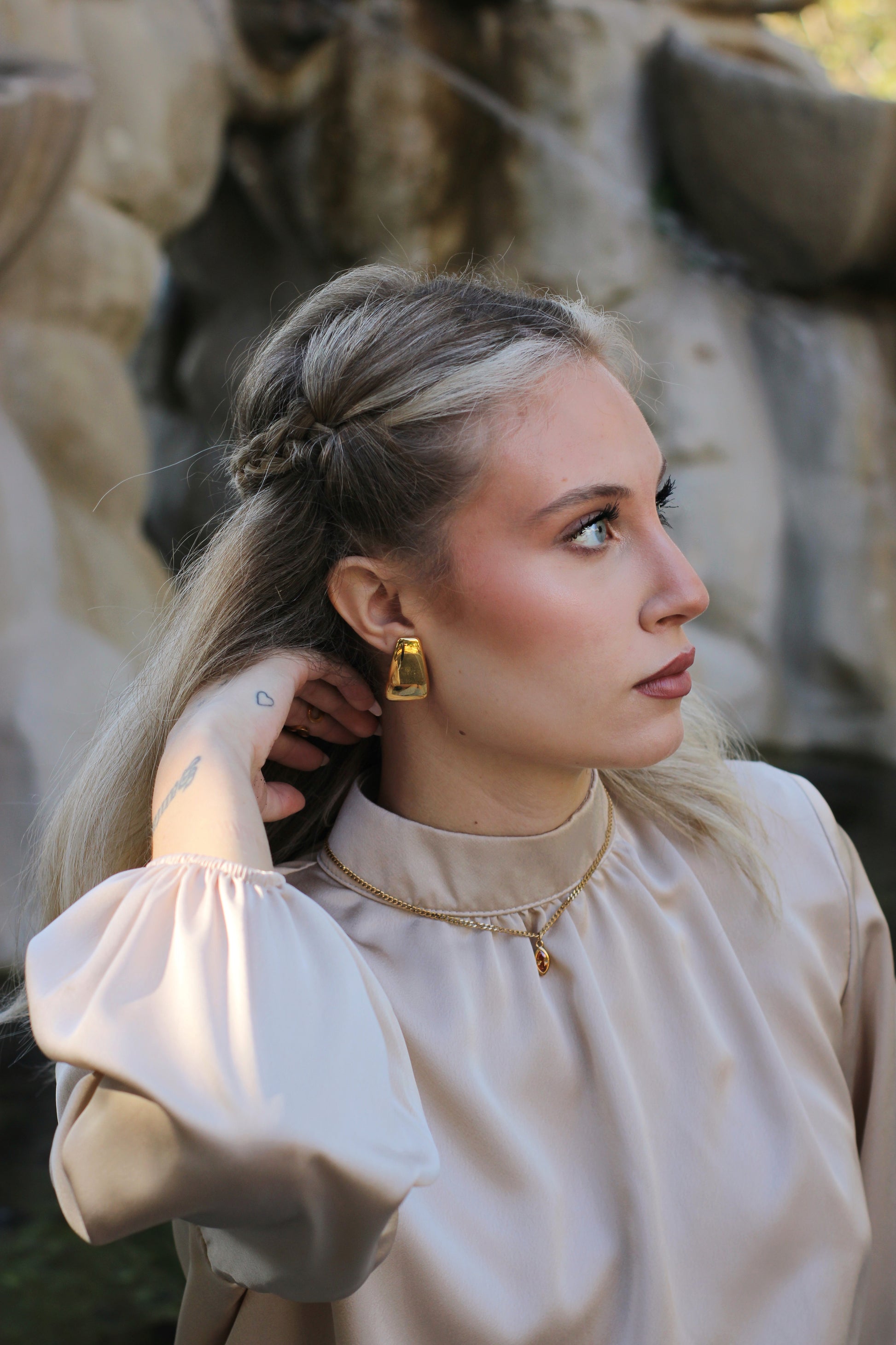 Die Modulo Ohrringe setzen auf modernes Design und klare Linien. Die rechteckige, leicht geschwungene Form verleiht diesen Ohrringen einen einzigartigen geometrischen Stil, der zeitgemäß und doch zeitlos wirkt. Gefertigt aus hochwertigem Edelstahl, bieten sie hypoallergene und wasserdichte Eigenschaften, die sie ideal für den täglichen Gebrauch machen. Mit einer Größe von 3,25 cm x 2,0 cm und einem Gewicht von 15g sind sie ein Statement-Piece, das Komfort und Stil vereint.