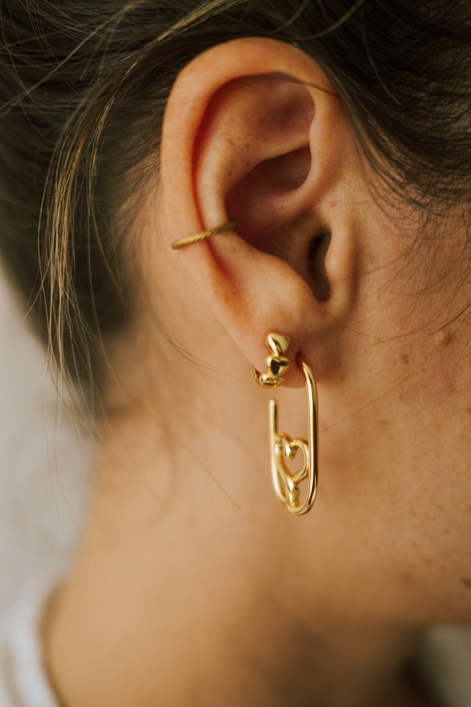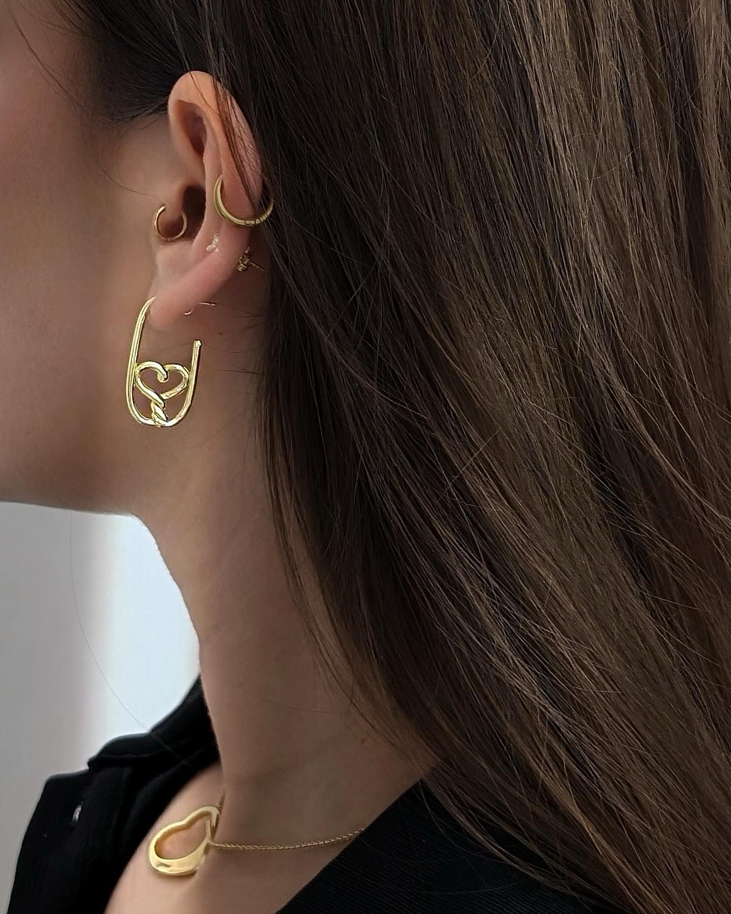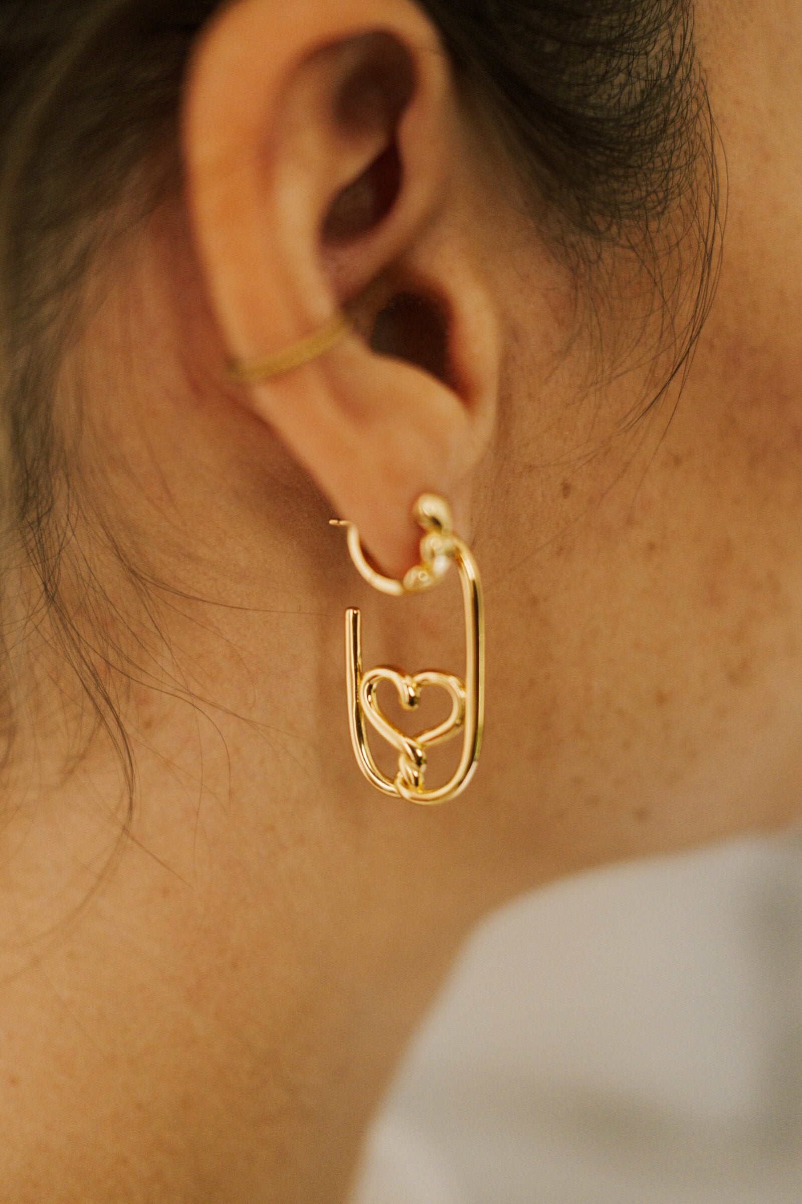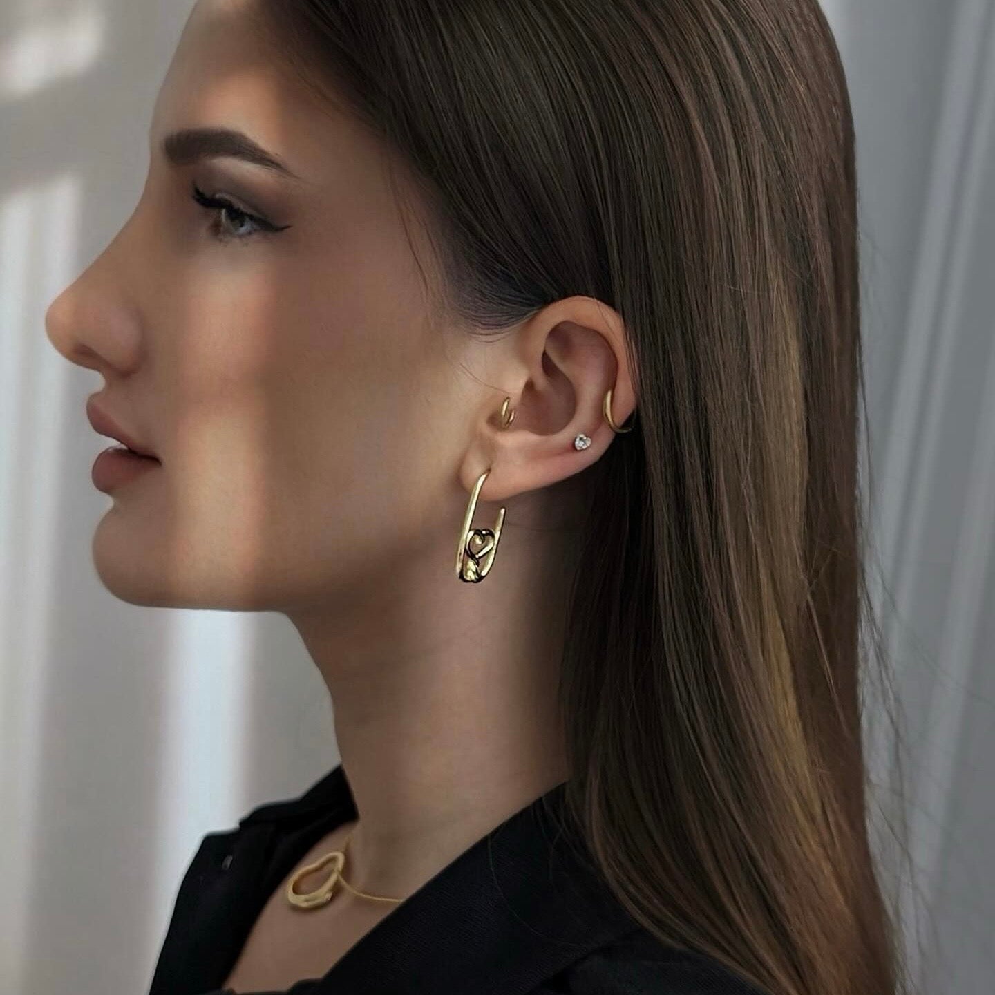 Bei diesem Ohrring haben wir uns inspirieren lassen von einer Sicherheitsnadel und das ist dabei herausgekommen: Ein modernes, romantisches Design, in das viel Herzblut geflossen ist.