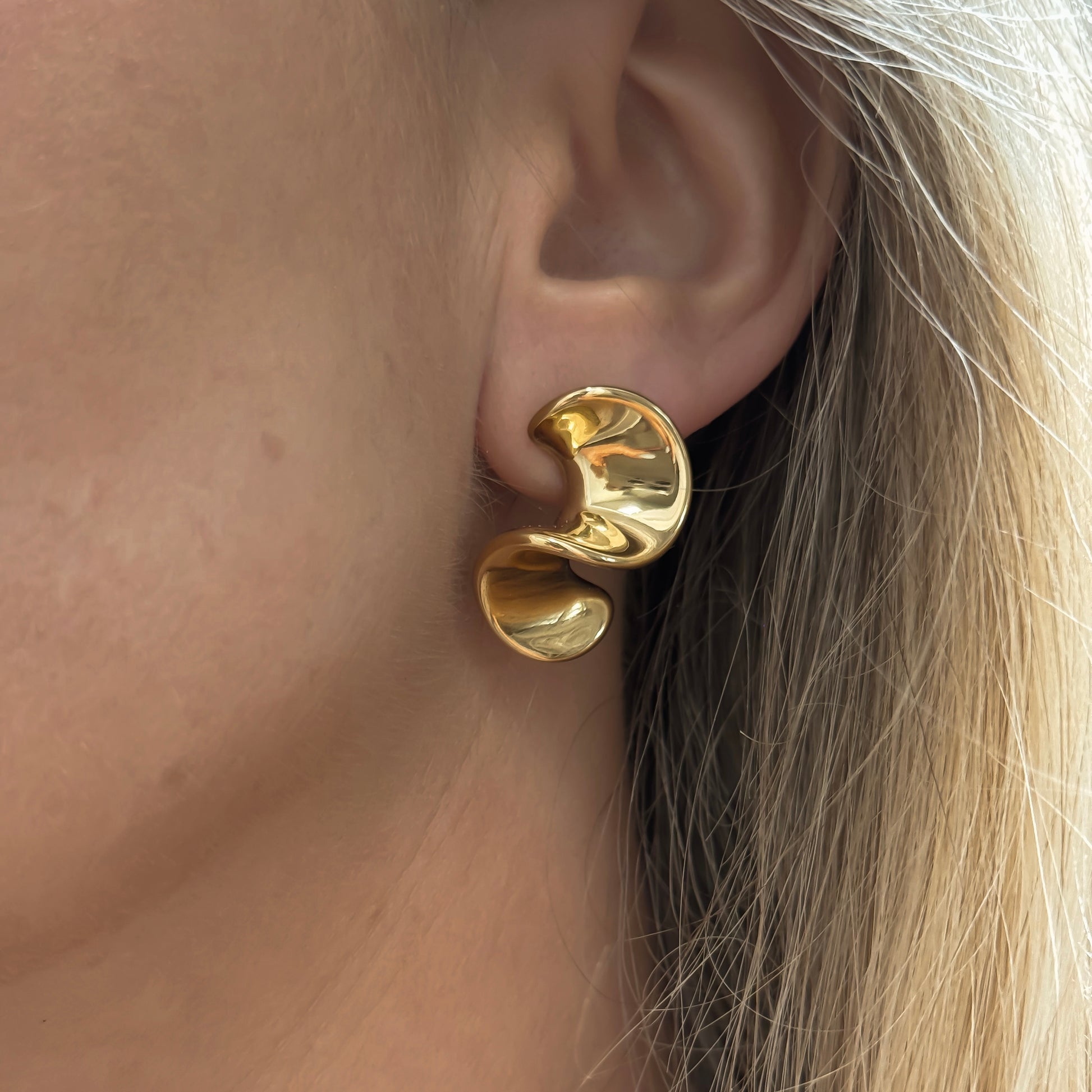 Unsere vergoldeten Edelstahl-Ohrringe "Sirena" sind das perfekte Accessoire, um deinem Look einen Hauch von Eleganz und Raffinesse zu verleihen. Die Kombination aus edlem Metall und dem wellenförmigen Design schafft ein zeitloses Schmuckstück, das du immer wieder tragen möchtest. Egal ob im Alltag oder zu besonderen Anlässen, diese Ohrringe sind ein wahrer Hingucker.