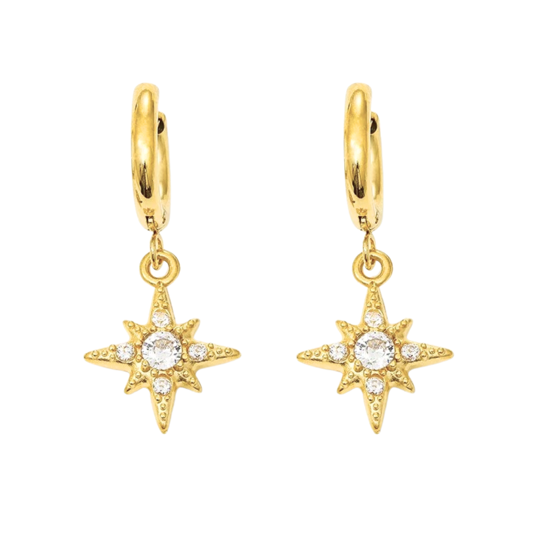 Die STELLA Ohrringe bringen mit ihrem funkelnden Design den Sternenhimmel zu dir. Hergestellt aus hochwertigem Edelstahl und veredelt mit einer langlebigen 18 K PVD Plattierung, strahlen sie nicht nur durch ihre Optik, sondern auch durch ihre Beständigkeit. Die funkelnden Zirkonia-Steine im sternförmigen Anhänger reflektieren das Licht auf faszinierende Weise und machen diese Ohrringe zu einem unverzichtbaren Accessoire für glamouröse Auftritte und stilvolle Alltagslooks.