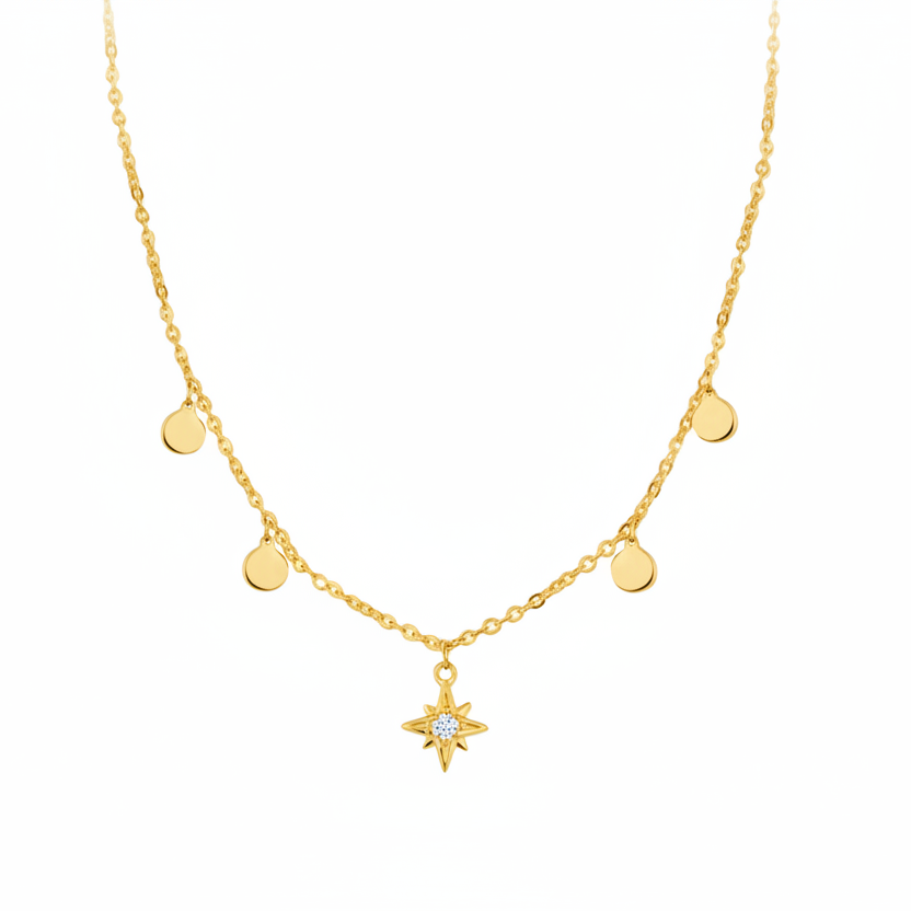 - Design: Elegante Kette mit funkelndem Sternanhänger und kleinen Akzenten
