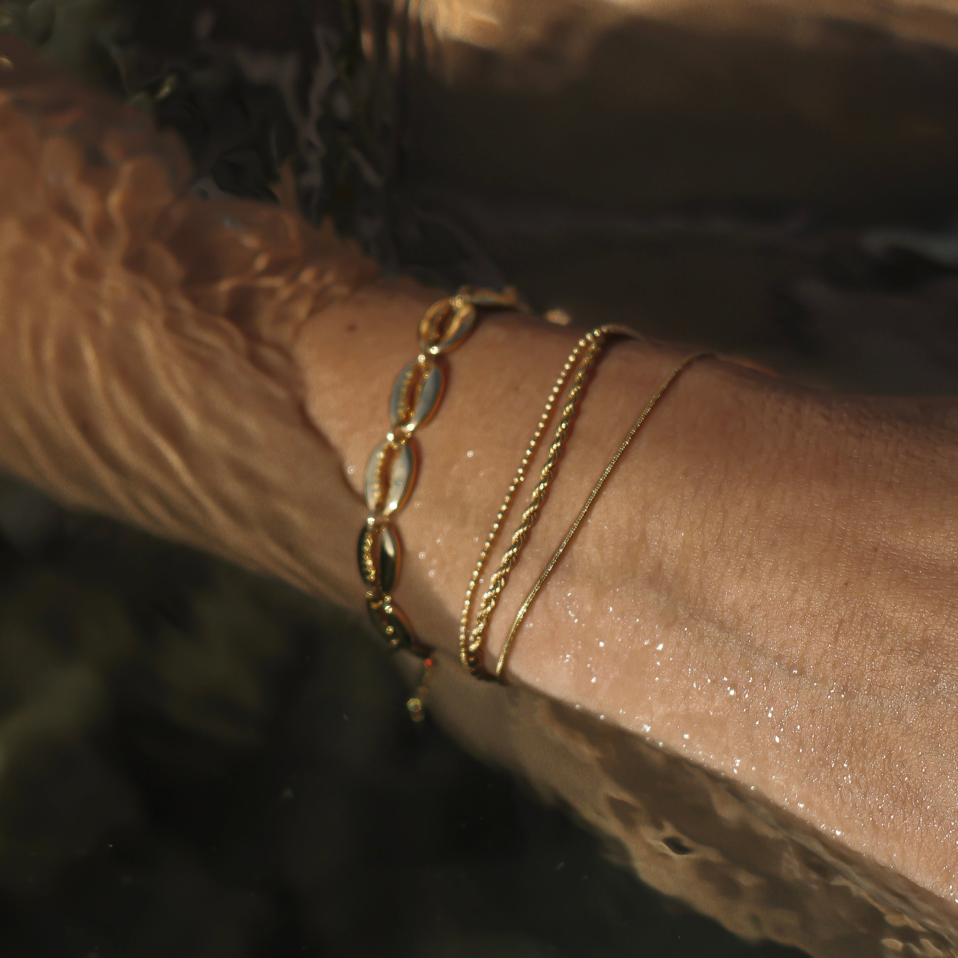 Ergänze deine Schmucksammlung mit dem eleganten Set "Trio di Oro" aus unserer neuesten Kollektion. Diese edlen Armbänder sind aus hochwertigem, vergoldetem Edelstahl gefertigt und bieten eine perfekte Kombination aus Stil und Langlebigkeit. Mit einer Länge von 17 cm plus 4,5 cm Verlängerung sind die Armbänder flexibel und passen sich deinem Handgelenk ideal an. Das Set besteht aus drei verschiedenen Designs, die sowohl einzeln als auch zusammen getragen werden können, um jedem Outfit einen Hauch von Eleganz zu verleihen.