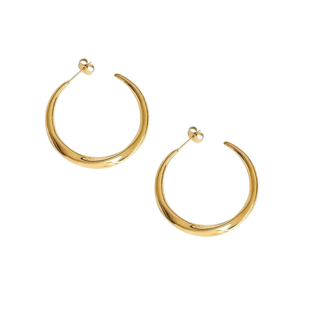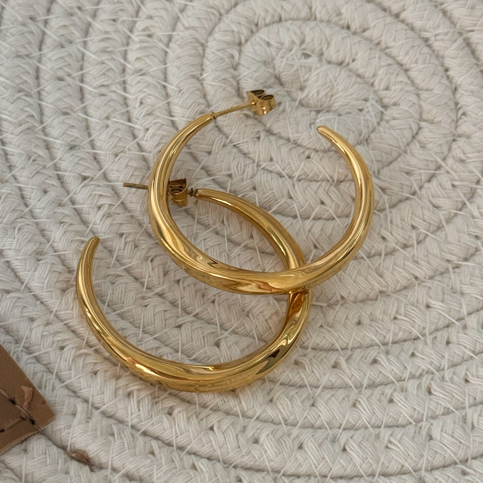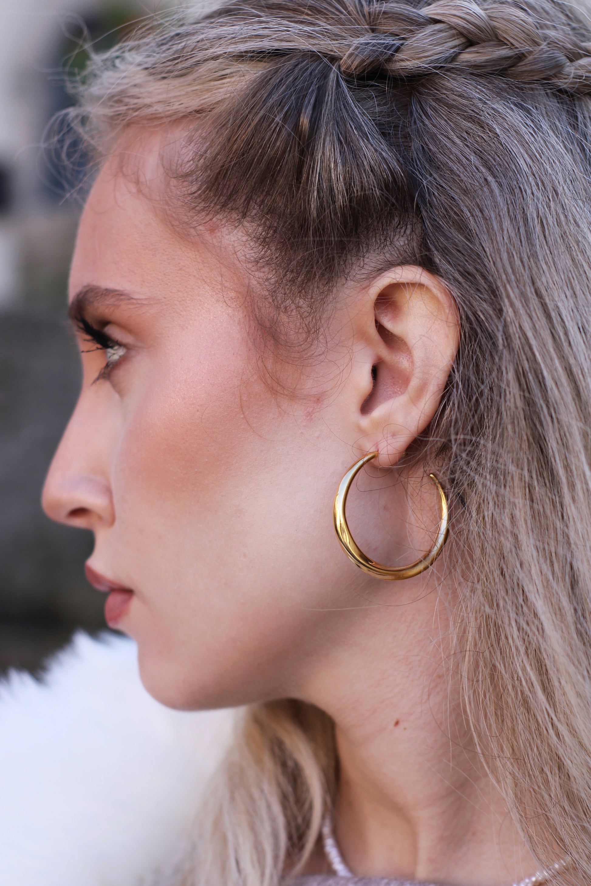 Entdecke Eleganz und Stil mit diesen wunderschönen VITALO Ohrringen. Unsere leicht geschwungenen Kreolen aus Edelstahl, sorgen für stilsicheren Glanz und sind zudem auch wasserfest. Ein perfekter Begleiter für deinen Alltag!